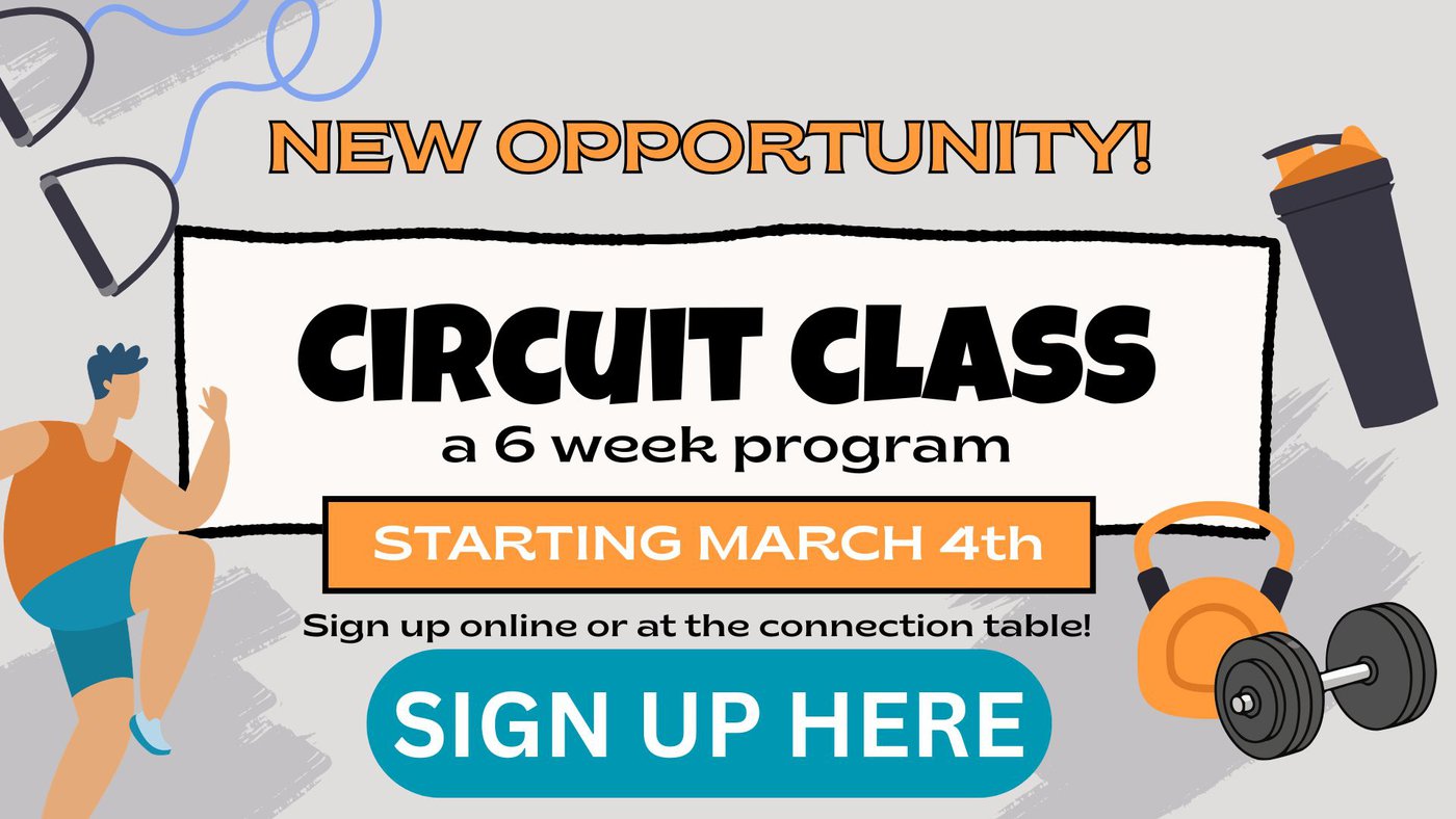 Once a week, for 6 weeks, we would love for your to join us to join in fellowship and fitness. Starting on March 4th, from 6:00 -7:00pm in rooms 49/51, Mary DeArmitt will be leading everyone through a circuit training class. Both men and women are invited. Click above for more info and to sign up!